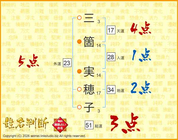 三箇実穂子さんの総運は51画の3点!