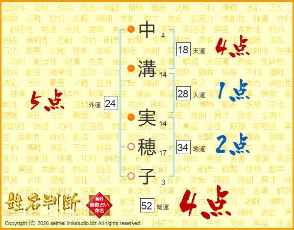 中溝実穂子さんの総運は52画の4点!
