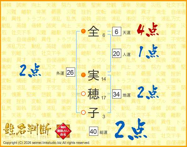 全実穂子さんの地運は34画の2点!
