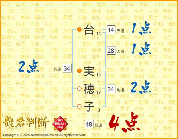 台実穂子さんの地運は34画の2点!
