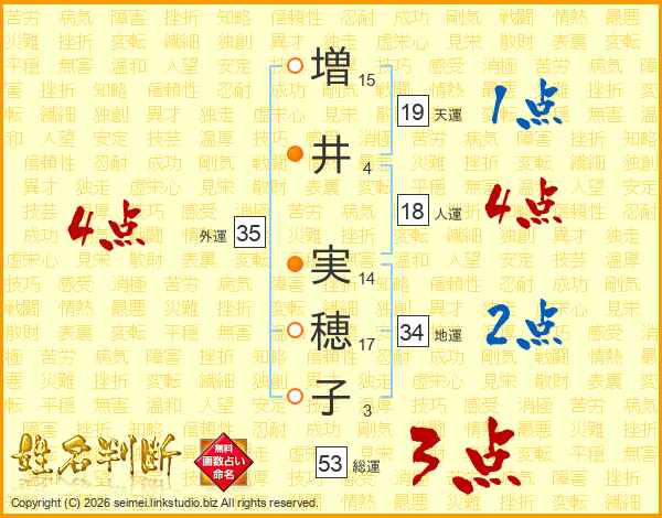 増(15画)井(4画) 実(14画)穂(17画)子(3画)