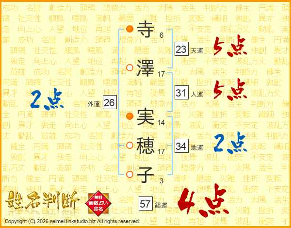 寺澤実穂子さんの総運は57画の4点!