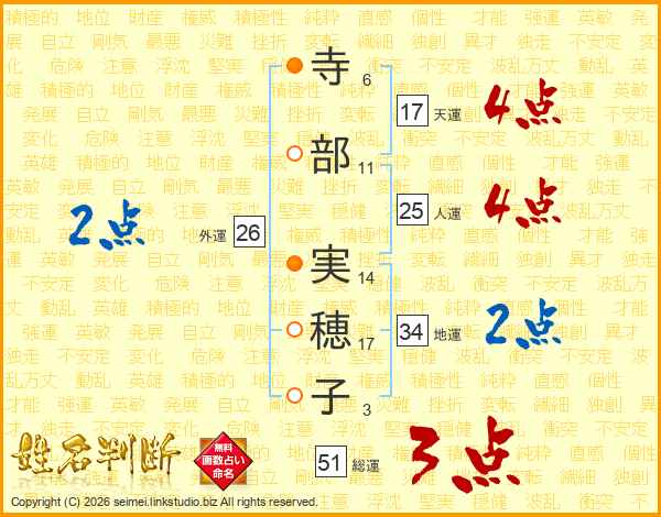 寺部実穂子さんの天運は17画の4点!