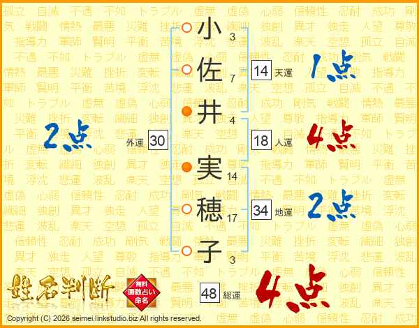 小佐井実穂子さんの総運は48画の4点!