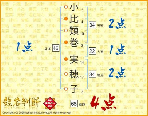 小(3画)比(4画)類(19画)巻(8画) 実(14画)穂(17画)子(3画)