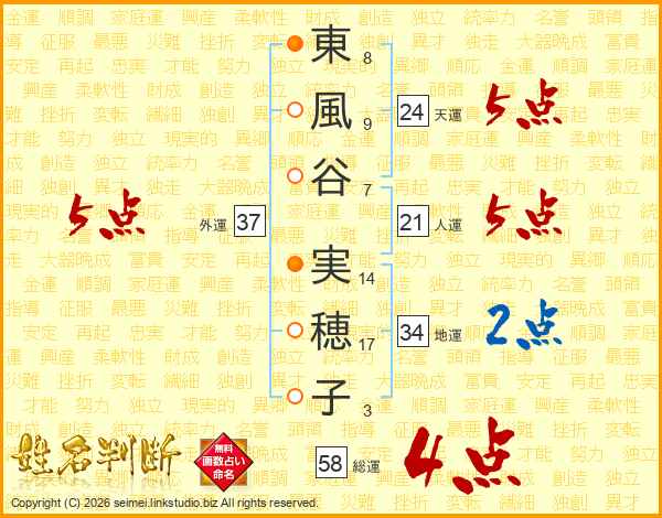 東風谷実穂子さんの総運は58画の4点!