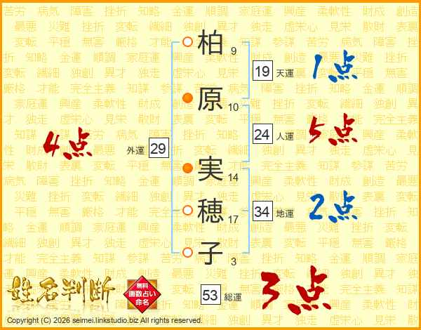 柏原実穂子さんの人運は24画の5点!