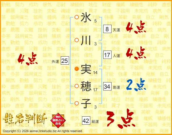 氷(5画)川(3画) 実(14画)穂(17画)子(3画)