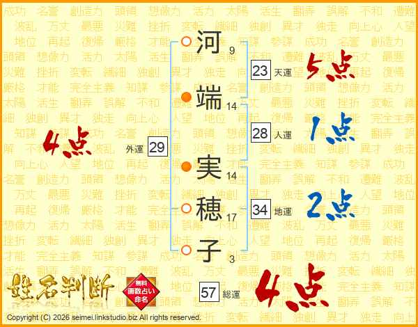 河端実穂子さんの総運は57画の4点!