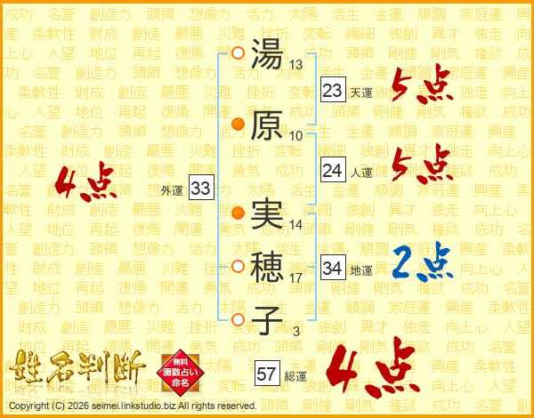湯原実穂子さんの総運は57画の4点!