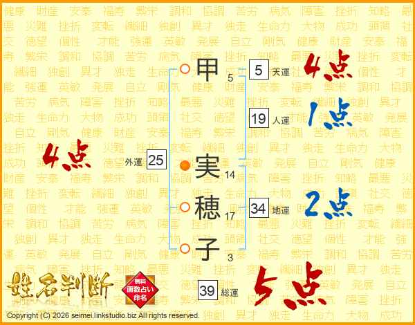 甲実穂子さんの総運は39画の5点!