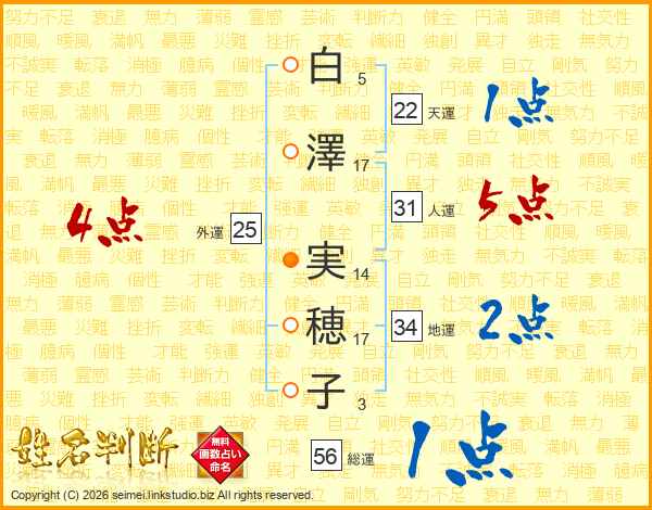 白(5画)澤(17画) 実(14画)穂(17画)子(3画)