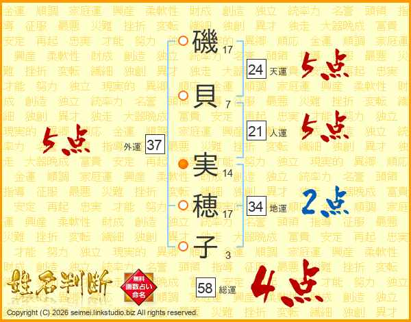 磯貝実穂子さんの総運は58画の4点!