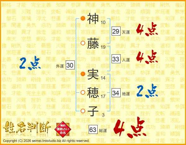 神(10画)藤(19画) 実(14画)穂(17画)子(3画)