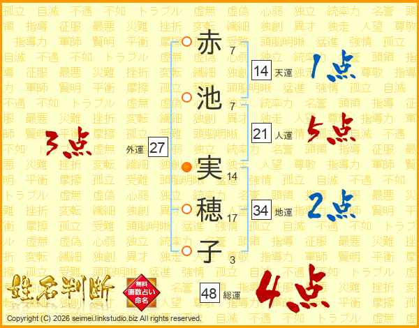 赤池実穂子さんの総運は48画の4点!