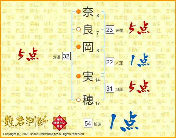 奈(8画)良(7画)岡(8画) 実(14画)穂(17画)