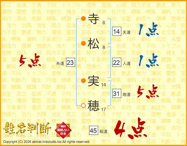 寺松実穂さんの総運は45画の4点!
