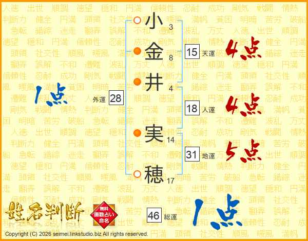 小(3画)金(8画)井(4画) 実(14画)穂(17画)
