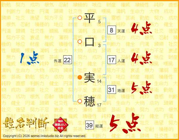 平口実穂さんの総運は39画の5点!