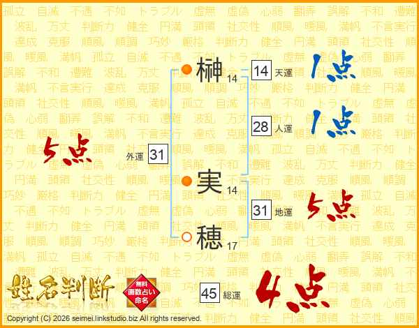 榊実穂さんの地運は31画の5点!