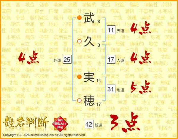 武(8画)久(3画) 実(14画)穂(17画)