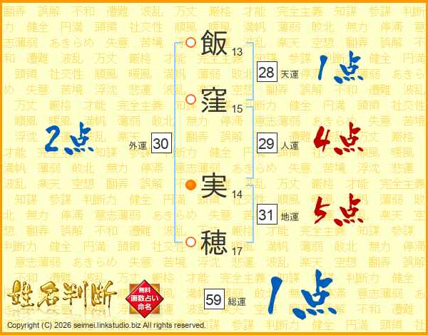 飯窪実穂さんの地運は31画の5点!