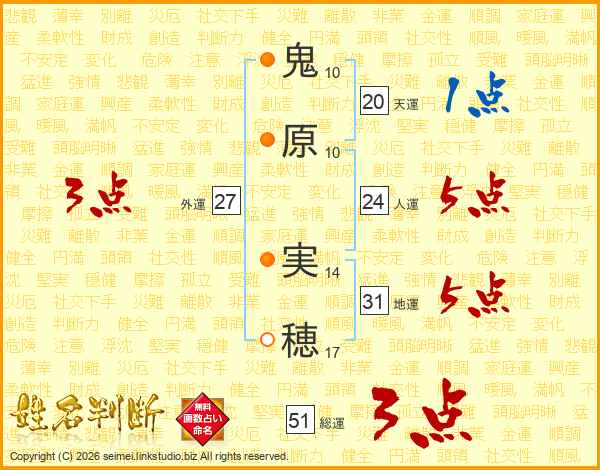 鬼原実穂さんの地運は31画の5点!