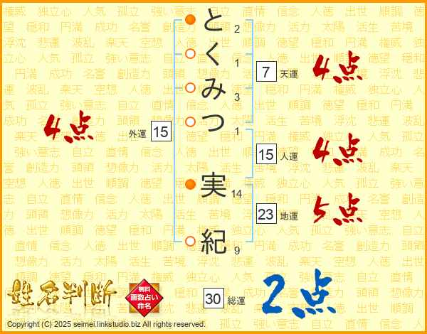 とくみつ実紀さんの総運は30画の2点!