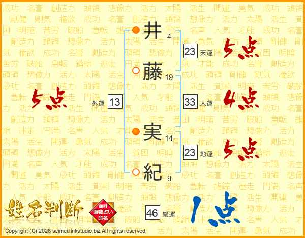 井藤実紀さんの人運は33画の4点!