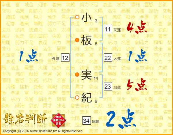 小板実紀さんの総運は34画の2点!