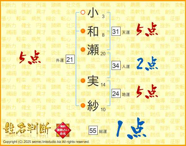 小和瀬実紗さんの総運は55画の1点!