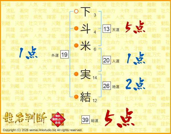 下(3画)斗(4画)米(6画) 実(14画)結(12画)