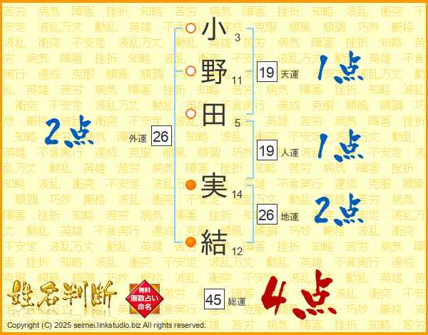 小野田実結さんの地運は26画の2点!