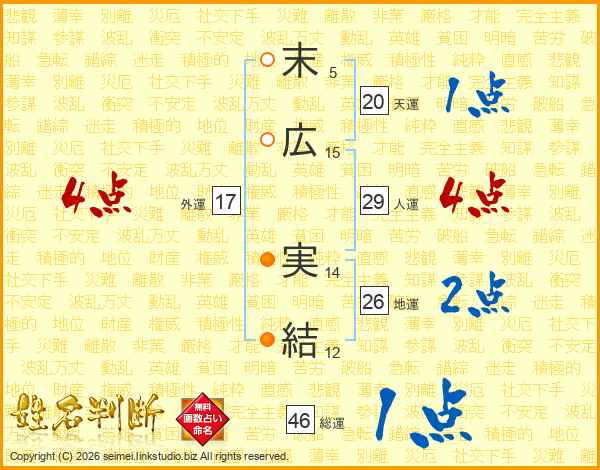 末広実結さんの総運は46画の1点!