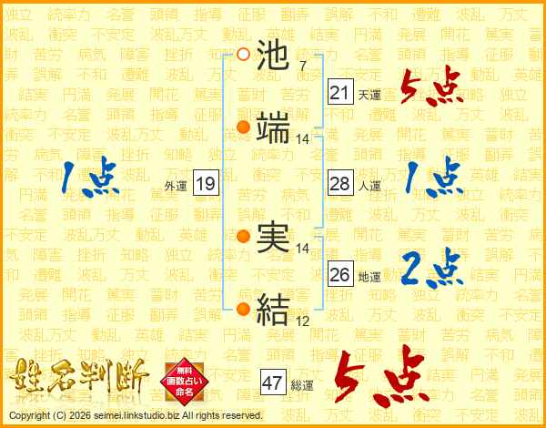 池端実結さんの総運は47画の5点!