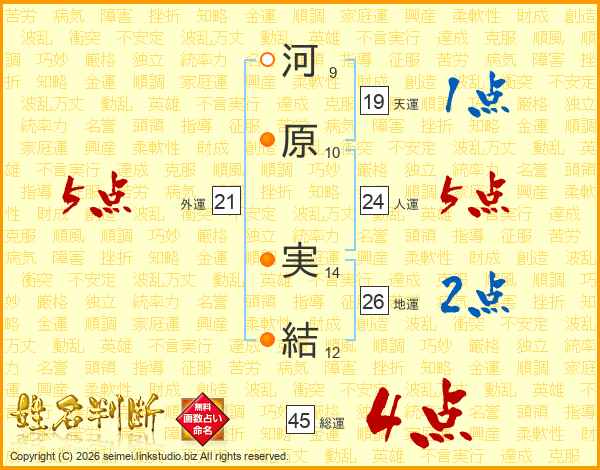 河原実結さんの総運は45画の4点!