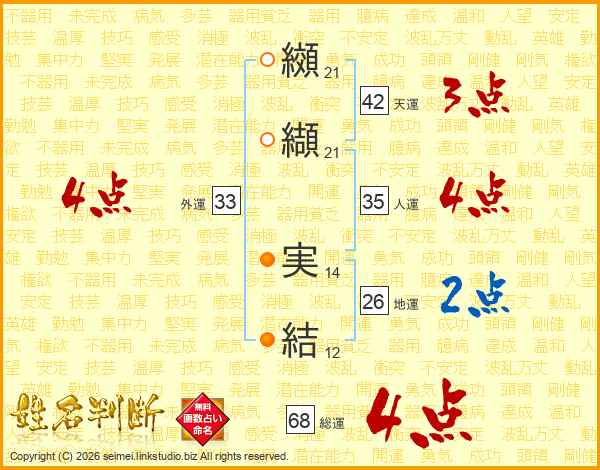 纐纈実結さんの総運は68画の4点!