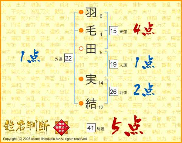 羽(6画)毛(4画)田(5画) 実(14画)結(12画)