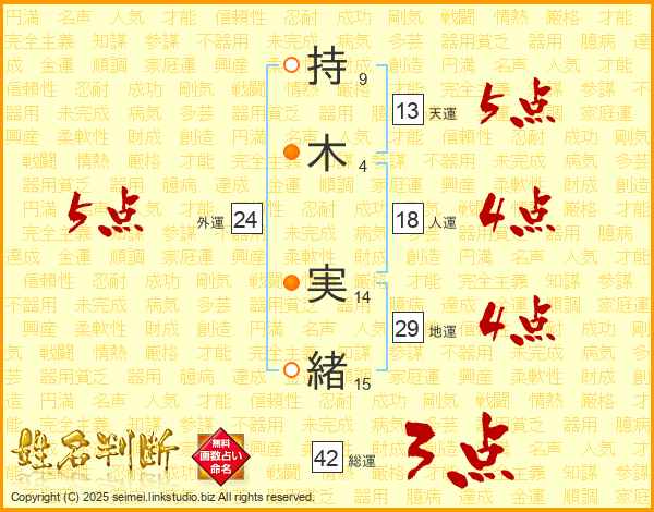 金運 順調 家庭運 興産 柔軟性 財成 創造