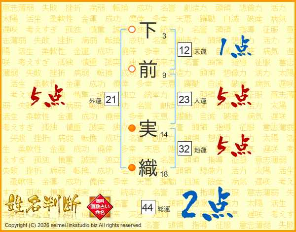 下前実織さんの総運は44画の2点!