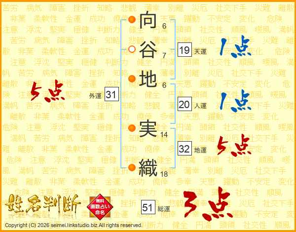 向谷地実織さんの天運は19画の1点!