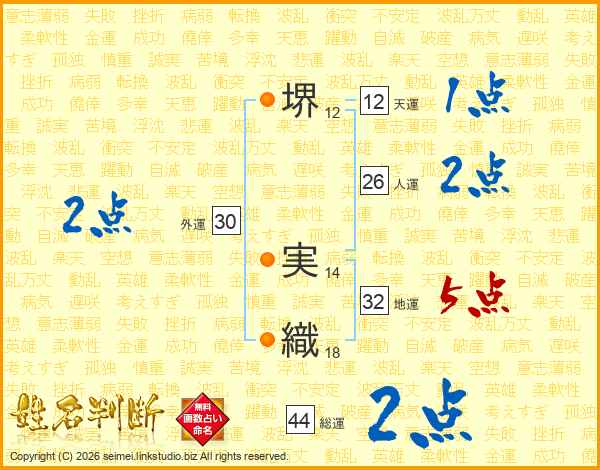 堺実織さんの総運は44画の2点!