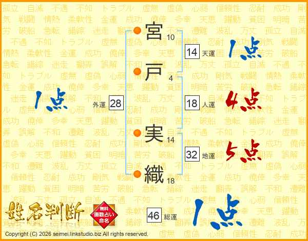 宮戸実織さんの総運は46画の1点!