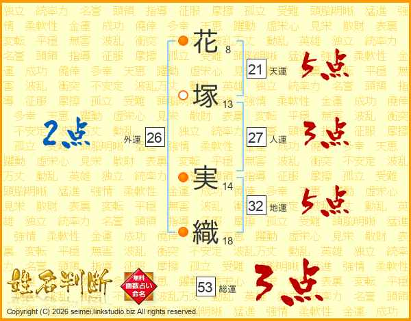 花塚実織さんの総運は53画の3点!