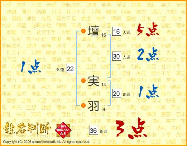 壇実羽さんの総運は36画の3点!