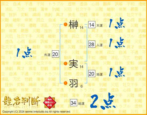 榊実羽さんの天運は14画の1点!