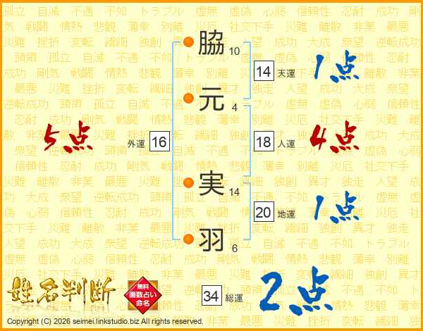 脇元実羽さんの天運は14画の1点!