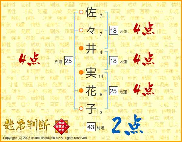 佐々井実花子さんの総運は43画の2点!