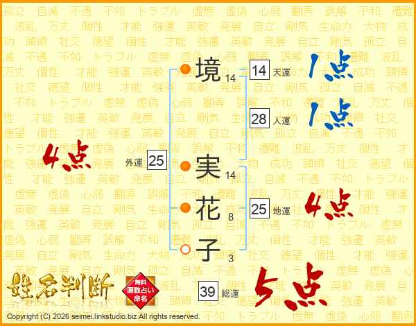 境実花子さんの外運は25画の4点!