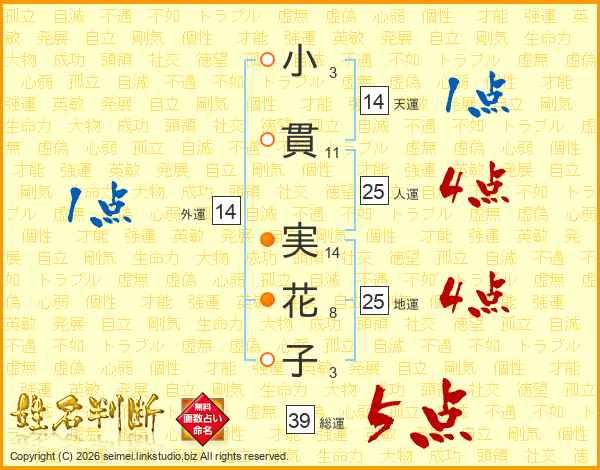 小貫実花子さんの外運は14画の1点!